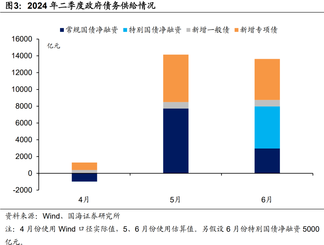 不过在2024年4月7日报告《利率债供给高峰来临?》我们也表示,今年5月份国债净融资量已经偏高,不包含特别国债在内,5月利率债净融资或超1.4万亿元。为了平滑供给波动,我们认为6月份或是本轮超长期特别国债较为合适的发行时点。