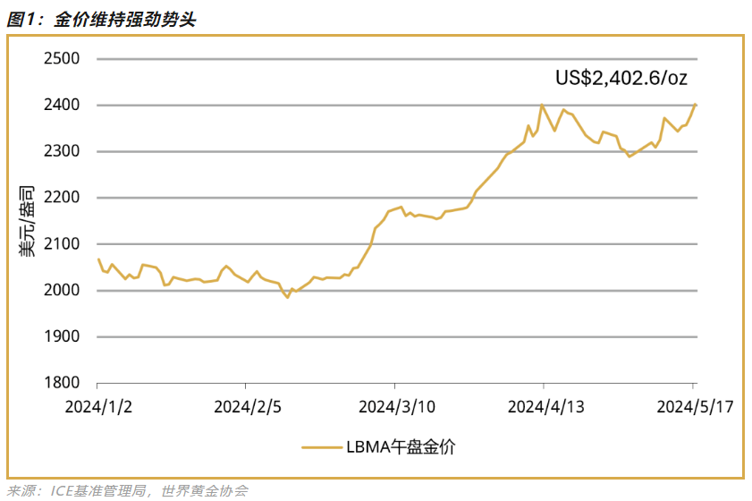 对于黄金再创佳绩,金价再度刷新历史纪录,世界黄金协会5月20日最新报告表示,5月至今金价再度开启涨势,再度上升的地缘政治风险以及投资者对美联储提前降息的升温是主要推手。